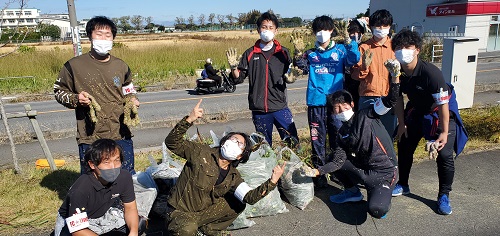 | 翌日はあま市民大会ですが、9名の心優しきメンバーが草だらけ・ひっつき豆だらけになって汗を流しました。 |