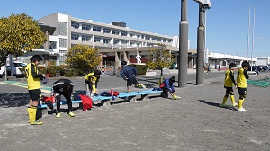 | 生徒さんと一緒にスポーツで、サッカーで何を得ることが出来るのか?や、ストレッチ・準備運動の大切さを共感しました。 |